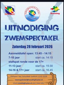 Het Zwemspektakel is een sportieve en vrolijke activiteit voor alle scouts van Scouting regio Fryslân, vanaf welpenleeftijd. Tijdens dit jaarlijkse evenement draai…